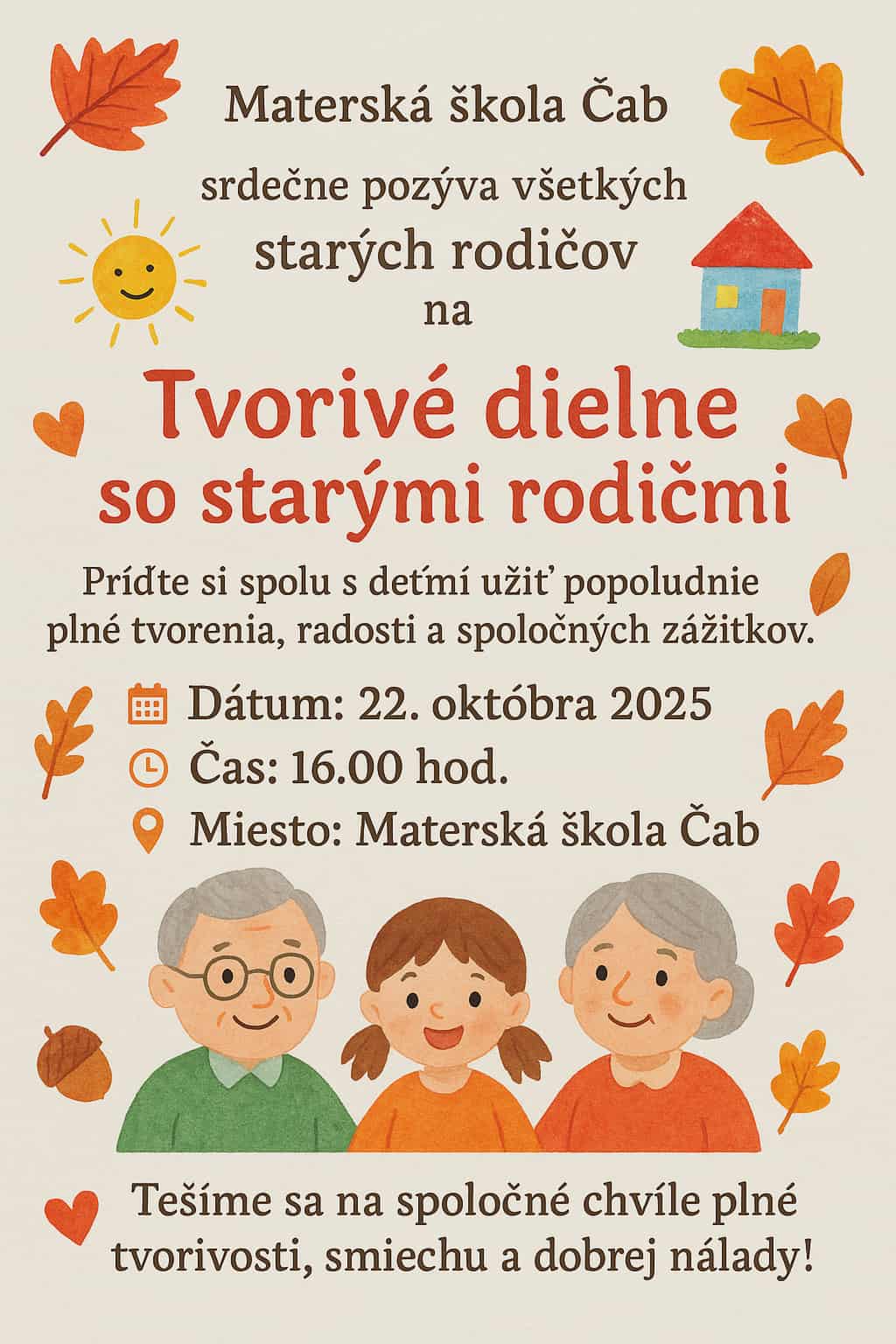 - Deti, pre ktoré je predprimárne vzdelávanie povinné (deti, ktoré dovŕšili vek 5 rokov do 31.08.2025), vrátane detí, ktoré pokračujú v plnení povinného predprimárneho vzdelávania s trvalým pobytom v obci Čab